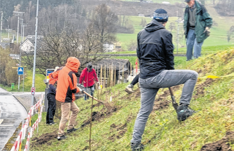 Bereits zum zweiten Mal liessen sich Mitglieder des Ortsvereins Leutschering für eine Hecken-Pflanzaktion engagieren. Nachdem im Frühling 2025 Heckenpflanzungen auf der Sportanlage Chrummen erfolgten, wurde dieses Mal die steile Böschung an der Leutschenstrasse in Freienbach bepflanzt. Das Projekt wurde durch die Umwelt- und Landschaftskommission der Gemeinde Freienbach lanciert und vom Werkhof unterstützt. Bis anhin musste die Böschung ein- bis zweimal Mal pro Saison mühsam gemäht werden. Als Alternative soll die Wildhecke neben ökologischen Vorteilen auch eine Arbeitsentlastung mit sich bringen.