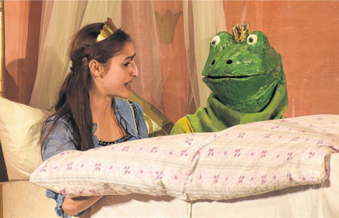 Da ist zum Beispiel die Rolle des pflichtbewussten, pingeligen Zeremonienmeisters, der auch ab und an die Kinder zur Mässigung ermahnt. Das Reisetheater bringt auch unbekannte, unterhaltsame Szenen ins Stück ein: Mit einer Bergungsmission versuchen Zeremonienmeister und Hofdienerin die Goldkugel der Prinzessin aus dem Brunnen zu retten. Beim Abendessen folgt von ihrem Vater die Moral der Geschichte: «Was man versprochen hat, muss man auch halten.» Das nimmt sich die Prinzessin schlussendlich zu Herzen und sieht am Abend ein, dass sie den zuvor verstossenen Frosch als Freund doch gerne bei sich behalten würde. Beim Gutenachtkuss beginnen im Saal dann die Lichter zu flackern. Der Frosch ist zum Prinzen geworden. Hinter der Kulisse ist lautes Scheppern zu hören: Die eisernen Ringe um Ritter Heinrichs Herz – dem treuen Diener des Prinzen – sind vor Freude über den wiedergewonnenen Herren geplatzt.